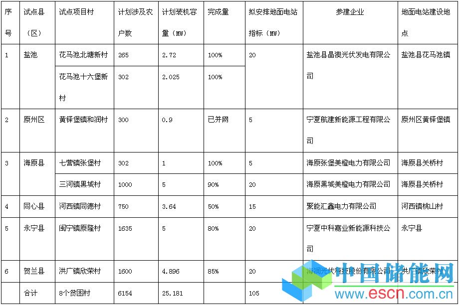 根據(jù)《國(guó)家能源局關(guān)于下達(dá)2015年光伏發(fā)電建設(shè)實(shí)施方案的通知》(國(guó)能新能[2015]73號(hào))和《自治區(qū)扶貧辦自治區(qū)發(fā)展改革委關(guān)于組織開展2015年度光伏扶貧工程試點(diǎn)工作的通知》(寧扶貧辦發(fā)[2015]84號(hào))文件精神。2015年12月,我委配合自治區(qū)扶貧辦,對(duì)6個(gè)試點(diǎn)縣(區(qū))項(xiàng)目建設(shè)完成率達(dá)到50%以上,經(jīng)過初步驗(yàn)收合格的8個(gè)試點(diǎn)村的2.5181萬千瓦屋頂扶貧光伏電站,擬按照1:4的比例配置地面電站指標(biāo)。配置總規(guī)模10.5萬千瓦。有關(guān)項(xiàng)目情況公告如下: