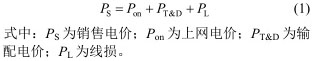目前銷售電價(jià)由上網(wǎng)電價(jià)、輸配電價(jià)和線損3部分構(gòu)成[2],計(jì)算公式為