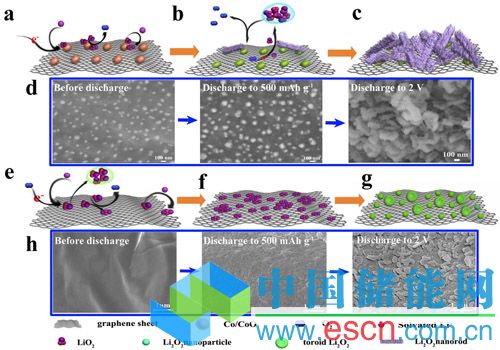 CMF-G-Co/CoO和CMF-G電極的放電機制及其形貌變化