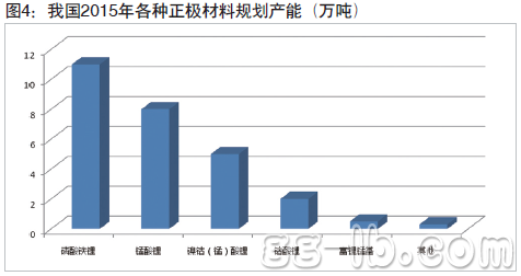 據(jù)高工鋰電產(chǎn)業(yè)研究所統(tǒng)計(jì),2012~2015年全國(guó)正極材料規(guī)劃投資產(chǎn)能分別達(dá)到8萬(wàn)噸、13.5萬(wàn)噸、19萬(wàn)噸和26.8萬(wàn)噸。到2015年,正極材料產(chǎn)能分別達(dá)到磷酸鐵鋰11萬(wàn)噸、錳酸鋰8萬(wàn)噸、鎳鈷(錳)酸鋰5萬(wàn)噸、鈷酸鋰2萬(wàn)噸、富鋰錳基0.5萬(wàn)噸和其他正極材料0.3萬(wàn)噸(圖4)。如果以25KWh容量的純電動(dòng)汽車(chē)電池組計(jì)算,那么需要200萬(wàn)輛純電動(dòng)汽車(chē)才能消耗11萬(wàn)噸磷酸鐵鋰,115萬(wàn)輛消耗8萬(wàn)噸錳酸鋰產(chǎn)能,這意味著至少需要300萬(wàn)輛純電動(dòng)汽車(chē)才能消耗目前我國(guó)磷酸鐵鋰、錳酸鋰材料的規(guī)劃投資產(chǎn)能;鎳鈷(錳)酸鋰則需要50億部IPHONE5才能消耗,鈷酸鋰則需要20億部,這些是一個(gè)難以實(shí)現(xiàn)的數(shù)字,充分反應(yīng)了我國(guó)正極材料產(chǎn)能?chē)?yán)重過(guò)剩的局面。