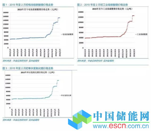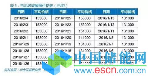 數(shù)據(jù)顯示,截至2016年2月4日,電池級碳酸鋰均價為153000元,較2015年初漲幅達255.8%。
