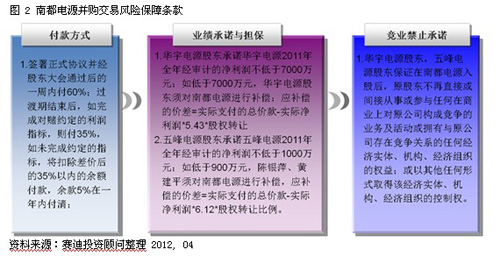 華宇電源擁有年產(chǎn)1440萬套極板及800萬只電池的生產(chǎn)能力,且其所在的田營工業(yè)園是全國鉛污染防治和鉛再回收的品牌工業(yè)園,已經(jīng)形成包括鉛精深加工、電池極板加工、電池生產(chǎn)、廢舊電池回收以及再生鉛加工的完整鉛循環(huán)經(jīng)濟(jì)模式,是國內(nèi)最適合發(fā)展動(dòng)力電池產(chǎn)業(yè)集群的園區(qū)之一。五峰電源是專業(yè)從事電動(dòng)自行車電池的銷售公司,其銷售的電池品牌為“新五峰”,擁有分布全國的銷售渠道和網(wǎng)絡(luò)。值得注意的是,為了降低此次收購的風(fēng)險(xiǎn),南都電源在具體的收購條款中特意設(shè)定了業(yè)績承諾與競業(yè)禁止承諾。