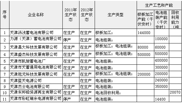 這11家在生產(chǎn)企業(yè)極板加工總產(chǎn)能92.4萬(wàn)千伏安時(shí),電池組裝產(chǎn)能531.44萬(wàn)千伏安時(shí),回收利用能力2.007萬(wàn)噸。其中,天津杰士電池有限公司電池組裝產(chǎn)能達(dá)350萬(wàn)千伏安時(shí)。