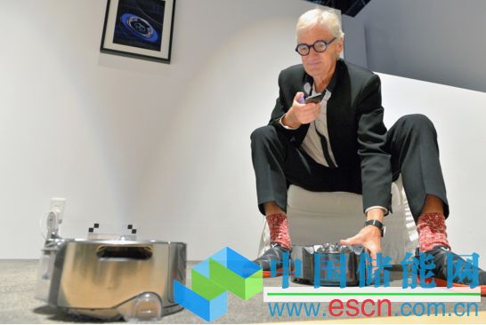 戴森公司創(chuàng)始人兼董事長詹姆斯·戴森在東京展示機(jī)器人吸塵器“戴森360 Eye”