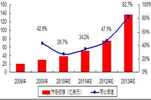 由于受到新能源汽車的影響,2012年全球鋰離子電池的市場規(guī)模將達到250億美元,按照鋰離子電池隔膜占30%計算,其市場規(guī)模將達到75億美元。未來幾年市場規(guī)模的增長速度也將呈現(xiàn)出逐年遞增的趨勢。