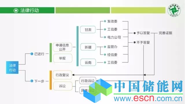 協(xié)會目前已經(jīng)向甘肅、新疆、云南三個地方政府的部門,包括發(fā)改委、工信委,還有電力公司申請信息公開,這是第一步。秦海巖表示,“通過信息公開希望他們能給我們提供一些具體的背景資料,我們根據(jù)這些背景資料可以走下一步的程序,比如申請行政復(fù)議,甚至可以到訴訟階段。當(dāng)然如果不給答復(fù),我們直接可以行政訴訟,因為大家有信息公開法,如果不答復(fù)就違法,直接可以行政訴訟,要求他必須答復(fù)?,F(xiàn)在我們已經(jīng)遞過去,他們都收到了,正在處理中,因為有時限,目前還沒有到時限,我們等時限到了之后,看看答復(fù)的情況?!比绻ǘ〞r限內(nèi)沒有回復(fù),不排除相關(guān)主體提起行政、民事訴訟的可能。