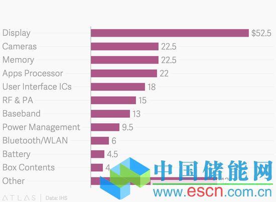 下圖是蘋果各部件的生產(chǎn)成本分布: