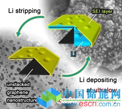 “我們發(fā)現(xiàn),藉由大量減少局部電流密度,就能有效抑制鋰枝晶的生長(zhǎng)。根據(jù)這樣的概念,我們采用具有超高比表面積的非堆棧石墨烯材料,打造出納米結(jié)構(gòu)的陽(yáng)極。結(jié) 果顯示這是一種十分有效的方法,”清華大學(xué)化學(xué)工程博士研究生兼該研究的主要作者Rui Zhang解釋,“此外,我們采用雙鹽電解液,取得更穩(wěn)定且更靈活的固態(tài)電解質(zhì)接口,以避免鋰金屬與電解液進(jìn)一步發(fā)生反應(yīng)?!?