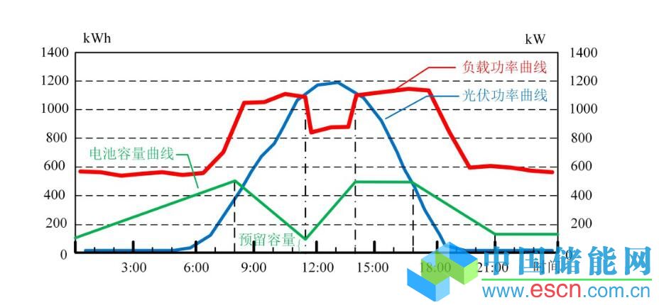 上面這張圖反映的就是:2015年9月份光伏平均日發(fā)電量為6532kWh,中午11:30到14:00之間平均發(fā)電量2786kWh,這個(gè)時(shí)間段的平均負(fù)載需求為2115kWh,低于光伏發(fā)電量。在沒有微電網(wǎng)儲(chǔ)能時(shí),光伏發(fā)電在滿足園區(qū)用電后,剩余部分經(jīng)過升壓變壓器后無償并入電網(wǎng)。儲(chǔ)能系統(tǒng)可以很好利用中午時(shí)段園區(qū)無法消納的光伏發(fā)電量給儲(chǔ)能電池(500kWh)充電,并在用電高峰時(shí)段放電。微電網(wǎng)能源管理系統(tǒng)會(huì)根據(jù)每天的生產(chǎn)安排、預(yù)測的光伏發(fā)電量,適當(dāng)調(diào)整電池充放電比例,同時(shí)系統(tǒng)預(yù)留一部分電池容量給數(shù)據(jù)中心和關(guān)鍵負(fù)載做備用電源。微電網(wǎng)能源管理系統(tǒng)通過實(shí)時(shí)監(jiān)測電網(wǎng)狀態(tài),在電網(wǎng)發(fā)生故障時(shí),利用公共接入點(diǎn)(PCC)的靜態(tài)開關(guān),快速切斷與電網(wǎng)的連接,進(jìn)入孤島運(yùn)行狀態(tài),確保微電網(wǎng)內(nèi)部關(guān)鍵負(fù)荷的供電。