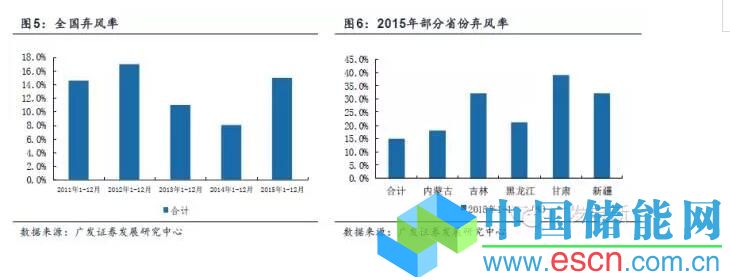 2015年,風(fēng)電棄風(fēng)限電形勢加劇,全年棄風(fēng)電量339億千瓦時,同比增加213億千瓦時,平均棄風(fēng)率15%,同比增加7個百分點。其中棄風(fēng)較重的地區(qū)是內(nèi)蒙古,棄風(fēng)電量91億千瓦時,棄風(fēng)率18%。甘肅棄風(fēng)電量82億千瓦時,棄風(fēng)率39%。新疆棄風(fēng)電量71億千瓦時,棄風(fēng)率32%。吉林棄風(fēng)電量27億千瓦時,棄風(fēng)率32%。