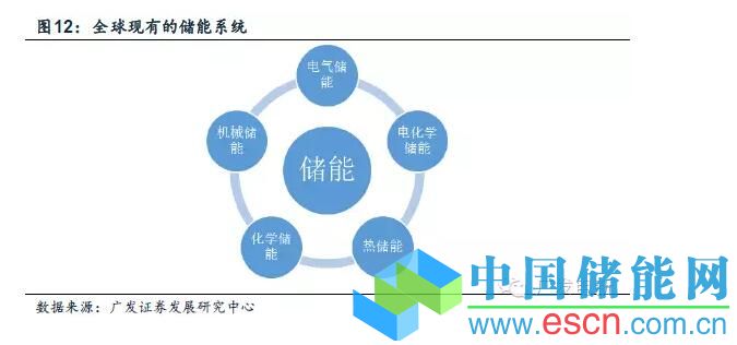 當(dāng)前儲能技術(shù)的應(yīng)用主要有機械儲能,熱儲能和電化學(xué)儲能。在電力系統(tǒng)中,以機械儲能中的抽水蓄能儲能和飛輪儲能為主。同時,伴隨著光熱電站的發(fā)展,熔融鹽為代表的儲熱技術(shù)也在電力系統(tǒng)中得到使用。電化學(xué)儲能技術(shù),當(dāng)前更多的是使用在電站級儲能示范項目,新能源汽車和應(yīng)急電源中。但是由于電化學(xué)儲能技術(shù)相對成熟和新能源汽車爆發(fā)的驅(qū)動力,大型的電化學(xué)儲能電站正在技術(shù)上和經(jīng)濟性上變得可能。