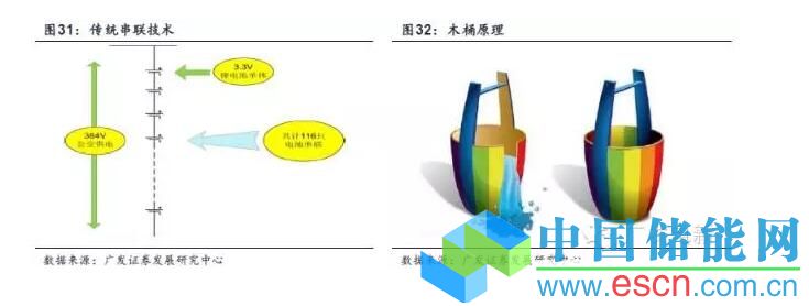 傳統(tǒng)BMS控制系統(tǒng)輸出的高電壓,是通過多級電池串聯(lián)而成。如木桶原理一樣,單個蓄電池組的容量基本上受組內(nèi)容量最小的電池決定。因此需要所有組內(nèi)單體電池的電壓、內(nèi)阻、容量等指標(biāo)越一致越好。同理,電池組組成的電池供電系統(tǒng),也是受最小容量的電池組決定
