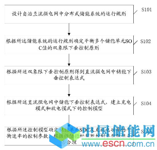 本發(fā)明公開了一種自治直流微電網(wǎng)的分布式儲(chǔ)能SOC雙象限下垂控制方法,包括:設(shè)計(jì)自治直流微電網(wǎng)中分布式儲(chǔ)能系統(tǒng)的運(yùn)行規(guī)則;根據(jù)所述儲(chǔ)能系統(tǒng)的運(yùn)行規(guī)則確定平衡多個(gè)儲(chǔ)能單元SOC值的雙象限下垂控制原則;根據(jù)所述雙象限下垂控制原則得到直流微電網(wǎng)中儲(chǔ)能下垂控制表達(dá)式;根據(jù)所述直流微電網(wǎng)中儲(chǔ)能下垂控制表達(dá)式,建立充電模式和放電模式下的控制模型;根據(jù)所述控制模型確定儲(chǔ)能單元SOC及充放電功率的平衡速率的控制參數(shù),根據(jù)評(píng)估指標(biāo)判斷控制參數(shù)取值是否合理。本發(fā)明提高了儲(chǔ)能單元的利用效率、延長(zhǎng)其使用壽命,運(yùn)行更高效。