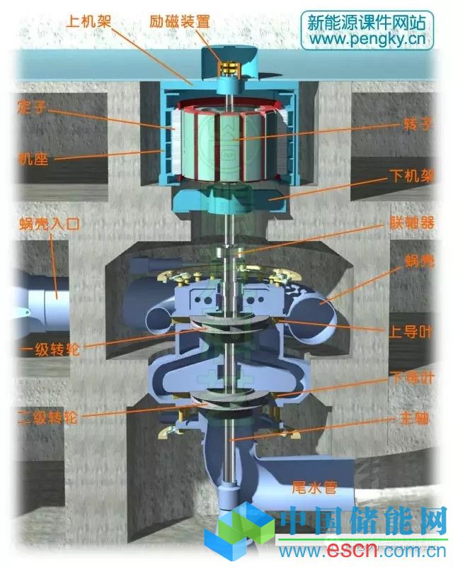 中國(guó)儲(chǔ)能網(wǎng)訊:本節(jié)介紹可逆式(兩機(jī)式)抽水蓄能電站,二級(jí)可逆式水泵水輪機(jī)機(jī)組與抽水蓄能電站地下廠房。
