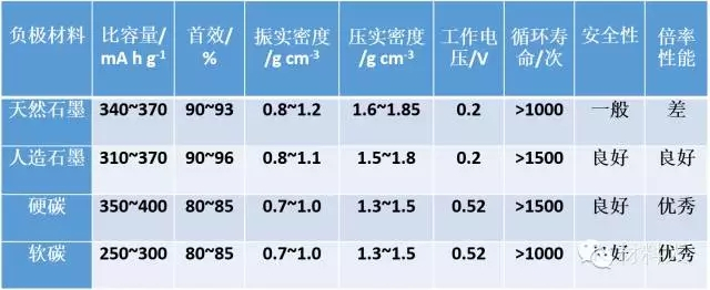 表1常見負(fù)極材料的性能對比
