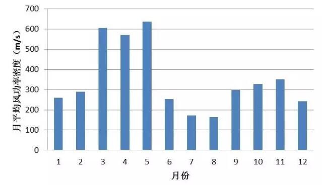 測風(fēng)塔70m高度風(fēng)功率密度月變化曲線
