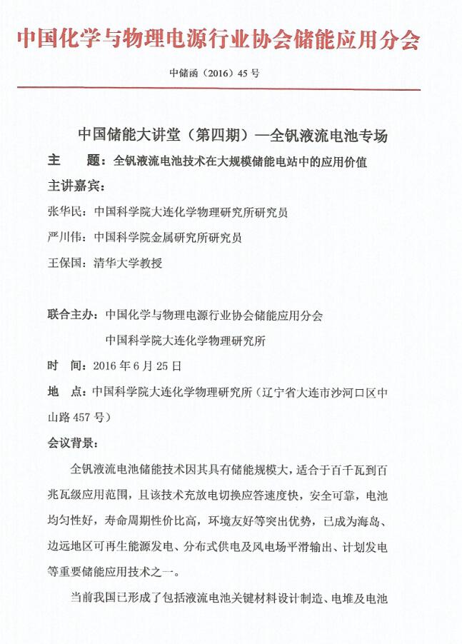 中國(guó)儲(chǔ)能大講堂(第四期)—全釩液流電池專場(chǎng)