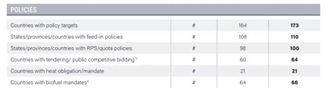此外,在拉動可再生能源,尤其是風力發(fā)電和太陽能發(fā)電的增長方面,政府領導力仍繼續(xù)扮演著關鍵角色。截至2016年初,全球已有173個國家制定了可再生能源發(fā)展目標,146個國家出臺了支持政策。多個城市、社區(qū)以及企業(yè)率先展開迅速壯大的“100%可再生能源”行動,這在推動全球能源轉型中發(fā)揮著至關重要的作用。