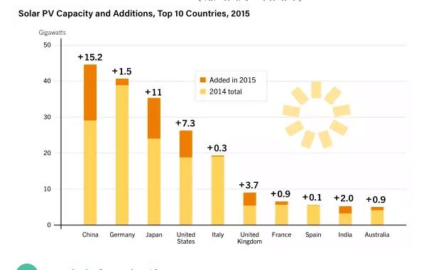 ↓↓↓2015年太陽能總容量、新增容量排名前10位國家↓↓↓