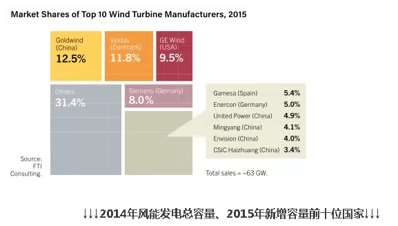 ↓↓↓2015年全球風機制造商市場份額排名↓↓↓