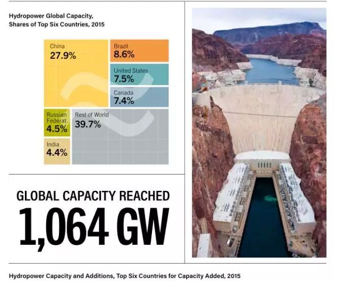 ↓↓↓2015年全球水力發(fā)電容量前6位的國家↓↓↓