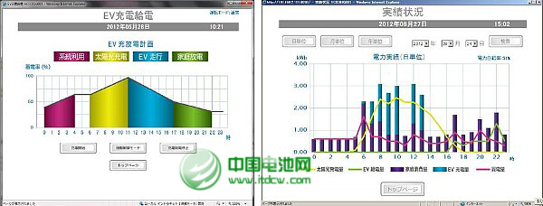 當(dāng)然,EV使用者也可以改變EV的使用計(jì)劃。充放電計(jì)劃也會(huì)根據(jù)改變后的使用計(jì)劃而自動(dòng)進(jìn)行改變。同時(shí)也提供了用于顯示使用者實(shí)際充放電和太陽(yáng)能發(fā)電電力使用狀況的畫(huà)面,通過(guò)該畫(huà)面可以確認(rèn)系統(tǒng)電力的用電量減少程度(圖1右)。