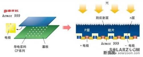 中國儲能網(wǎng)訊:伊藤技研“Armor999”的聚酰胺酰亞胺系印刷漿料在背接觸太陽能電池片的電極間起到絕緣作用。比傳統(tǒng)的太陽能背膜效果更完美,由于漿料是液態(tài)的,通過絲網(wǎng)印刷工藝,印刷在電磁片上,漿料在沒有固化前會自然流平、緊密的填充在電池片導(dǎo)電部位。聚酰胺酰亞胺樹脂中加入可溶性樹脂填充材,在獲得出色的印刷性的同時,還擁有極佳的機械強度與絕緣性。