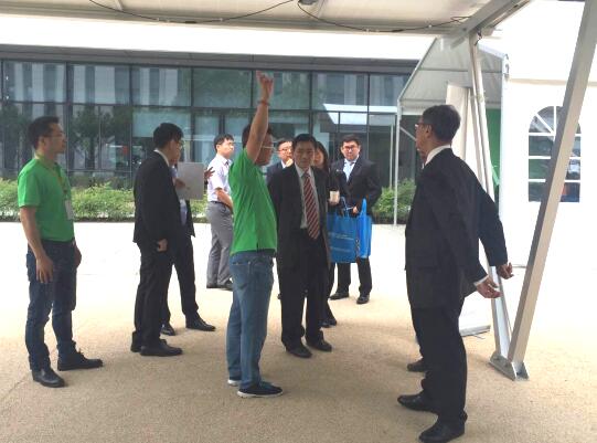 (圖:新加坡政府官員仔細聆聽ECA 創(chuàng)始人對于整套系統(tǒng)的講解)