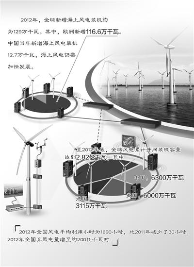 在看到風(fēng)電快速發(fā)展的同時(shí),還有組數(shù)據(jù)不容忽視。2012年全國風(fēng)電平均利用小時(shí)為1890小時(shí),比2011年的1920小時(shí)減少了30小時(shí)。2012年全國棄風(fēng)電量從2011年的120多億千瓦時(shí)增至約200億千瓦時(shí),棄風(fēng)電量占全年風(fēng)力發(fā)電量的1/5。