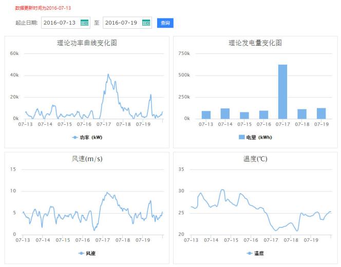 運(yùn)營人員只需登錄能量魔方大數(shù)據(jù)管理平臺(http://www.eeechina.net),點(diǎn)擊“運(yùn)營管理”頻道在線定位電場地址,輸入總裝機(jī)容量及所選風(fēng)機(jī)機(jī)型,依據(jù)氣象預(yù)測結(jié)果、所選機(jī)型發(fā)電參數(shù),即可實(shí)時在線獲得未來七天內(nèi)的中短期風(fēng)電場預(yù)測理論發(fā)電能力的評估報告,從而為電場投資方提供關(guān)鍵數(shù)據(jù)參考,并幫助電場運(yùn)維人員合理安排電場的運(yùn)行方式、減少棄風(fēng)、提高電場的經(jīng)濟(jì)效益。
