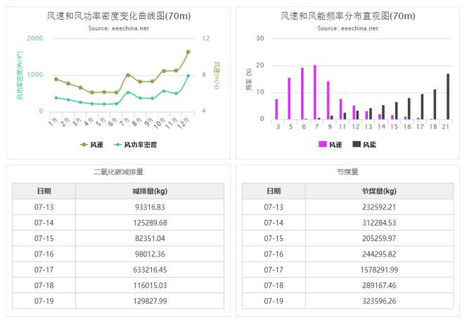 做好風(fēng)機(jī)發(fā)電能力預(yù)估是并網(wǎng)穩(wěn)定運(yùn)行和有效消納的重要條件,能量魔方在全國900多座專業(yè)氣象站的實(shí)時數(shù)據(jù)與數(shù)值天氣象預(yù)報的深度同化的基礎(chǔ)上,通過精準(zhǔn)坐標(biāo)點(diǎn)定位風(fēng)場位置,再根據(jù)其地理位置、發(fā)電設(shè)備和電場信息,由高精度數(shù)值天氣預(yù)報系統(tǒng)和預(yù)測功率系統(tǒng)準(zhǔn)確的預(yù)測電場未來七天的理論發(fā)電功率變化曲線、累計理論發(fā)電量、風(fēng)速、溫度節(jié)煤量、CO?減排量等重要參考指標(biāo)。