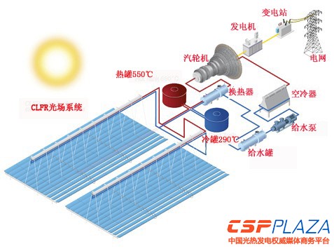 菲涅耳光熱發(fā)電技術(shù)目前的主要應(yīng)用方式是直接產(chǎn)生過熱蒸汽,其缺陷是無法進(jìn)行儲(chǔ)熱。此合作研發(fā)項(xiàng)目將測試菲涅爾熱發(fā)電技術(shù)使用熔鹽作為傳熱介質(zhì)并與熔鹽儲(chǔ)熱系統(tǒng)相配套的相關(guān)技術(shù)。