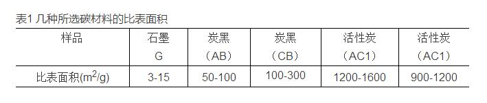 從材料廠家中選取了幾種代表性的碳材料,包括了石墨、活性炭、炭黑與碳納米管,更為詳細(xì)具體地探討了碳類型對(duì)電池性能的影響。幾種碳材料比表面積參數(shù)如下: