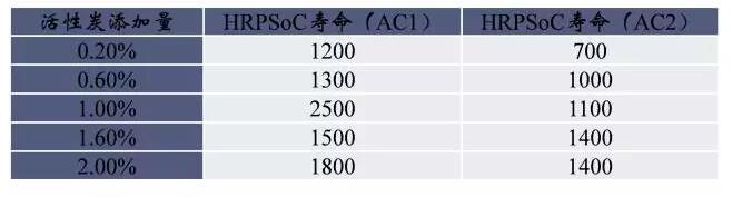 表2 活性炭添加量與HRPSoC壽命的關(guān)系