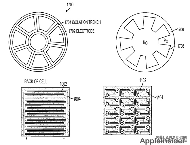 中國儲能網(wǎng)訊:本周二美國專利和商標(biāo)局通過了一項蘋果申請的名為“觸控傳感器和太陽能電池集成組件”的專利,該專利描述了一種可以在類似媒體播放器或手機等電子設(shè)備上直接將太陽能電池集成在觸控面板上的專利。