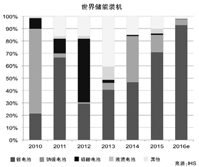 中國(guó)儲(chǔ)能網(wǎng)訊:IHS預(yù)計(jì),受美國(guó)、中國(guó)和韓國(guó)引領(lǐng),2016年電網(wǎng)儲(chǔ)能項(xiàng)目將達(dá)到2GW,較2015年底增長(zhǎng)20%。一個(gè)愈發(fā)顯著的現(xiàn)象是,由于成本大幅下降,鋰電池在電儲(chǔ)能中相對(duì)于鉛酸電池的優(yōu)勢(shì)正在顯現(xiàn),甚至也開始挑戰(zhàn)鈉硫電池和液流電池在大規(guī)模儲(chǔ)能中的歷史壟斷地位。鋰電在儲(chǔ)能市場(chǎng)中的市場(chǎng)份額穩(wěn)步增加,預(yù)計(jì)將從2010年的20%增長(zhǎng)到2016年的90%。