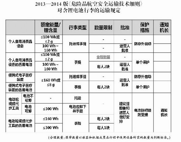 記者從2013—2014版《危險(xiǎn)品航空安全運(yùn)輸技術(shù)細(xì)則》中發(fā)現(xiàn),國(guó)際民航組織已經(jīng)將向旅客通報(bào)危險(xiǎn)品信息的要求從建議措施修改為強(qiáng)制措施。新《技術(shù)細(xì)則》要求必須確保只有在旅客表示已經(jīng)理解行李中的危險(xiǎn)物品限制之后,才能為其辦理購(gòu)票、值機(jī)和登機(jī)手續(xù)。同時(shí),對(duì)允許通過(guò)行李方式攜帶的鋰電池的數(shù)量、鋰含量、是否需要保護(hù)措施等內(nèi)容作出了具體要求。
