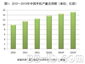 據(jù)高工鋰電產(chǎn)業(yè)研究所(GBII)統(tǒng)計(jì),2012年中國(guó)手機(jī)產(chǎn)量達(dá)到12.5億部。預(yù)計(jì)到2015年,中國(guó)的手機(jī)出貨量有望達(dá)到15.2億部。(圖1)2006年以來(lái),手機(jī)電池基本實(shí)現(xiàn)了鋰電池的全覆蓋,按照2012年手機(jī)出貨量12.5億部來(lái)計(jì)算的話,合計(jì)產(chǎn)值高達(dá)232億元。