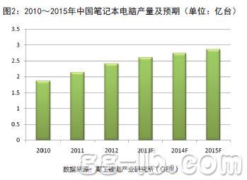 筆記本電腦是目前鋰電池的第二大應(yīng)用領(lǐng)域。據(jù)高工鋰電產(chǎn)業(yè)研究所(GBII)整理的數(shù)據(jù)顯示,2012年中國(guó)筆記本電腦出貨量達(dá)到2.4億臺(tái)(圖2)。