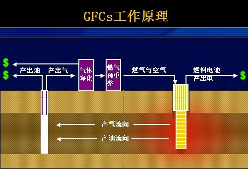 傳統(tǒng)的油砂采油技術(shù)是將油砂掘出地面后進(jìn)行原油提取,或者是在油砂中埋入陶瓷加熱體,利用熱量降低原油粘度來實(shí)現(xiàn)原位抽取原油。IEP提出了用固體氧化物燃料電池替代加熱體,利用發(fā)電時的副產(chǎn)熱作為地下熱源的新思路。該工藝提取出的原油可供常規(guī)使用,表層原油則通過重整來得到天然氣進(jìn)而為固體氧化物燃料電池提供燃料,而燃料電池產(chǎn)生的電能又可以直接在當(dāng)?shù)厥褂?。IEP稱該方法的產(chǎn)能能耗比為7:1。