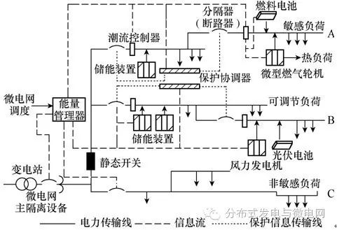 微網(wǎng)將分布式發(fā)電裝置、負(fù)荷、儲(chǔ)能以及控制裝置有機(jī)結(jié)合接入中低壓配電系統(tǒng)中。既可與電網(wǎng)聯(lián)網(wǎng)運(yùn)行,也可在電網(wǎng)故障或需要時(shí)與主網(wǎng)斷開(kāi)單獨(dú)運(yùn)行,是分布式可再生能源有效利用的重要形式。