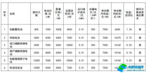 按照容量電價收費模式分析計算儲能各種技術路線投資收益:
