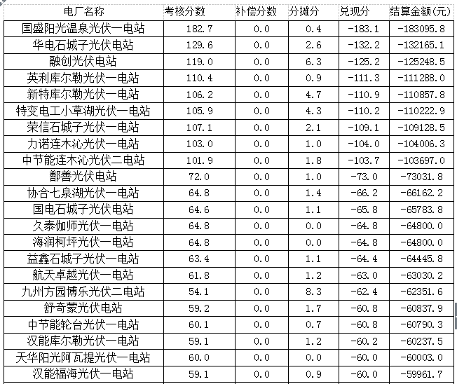 日前,國(guó)家能源局新疆監(jiān)管辦下發(fā)《關(guān)于公示2016年一季度新疆電網(wǎng)“兩個(gè)細(xì)則”考核補(bǔ)償情況的通知》,公示期7個(gè)工作日(自2016年8月8日起至2016年8月16日止),光伏考核補(bǔ)償情況見下表:
