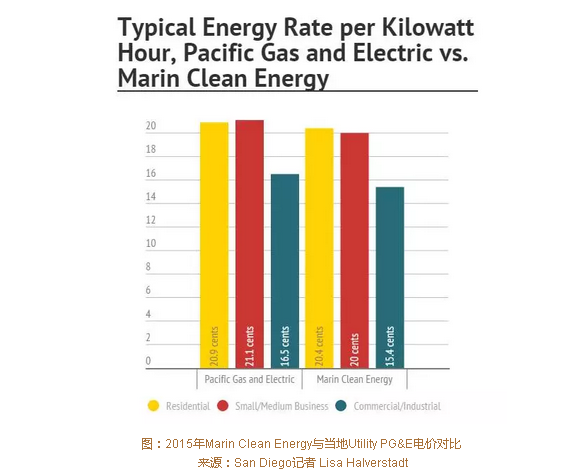 當我們在歐洲習慣了幾十個甚至幾百個供電商自由選擇的時候,也不忘苦笑批發(fā)市場上的電價下降仍然還沒有傳遞到終端電價,歐盟電力統(tǒng)一市場十多年前就在議程卻進程緩慢。加州2000年的大停電使得加州從自由化的零售市場重新回到了管制市場。但失敗并不代表永恒,2001年加州通過了允許CCA(Community Choice Aggregation)的法案,經(jīng)過9年與Utility的博弈,2010年第一個CCA——Marin County 的Marin Clean Energy正式運行。CCA作為公共組織代表當?shù)鼐用窈推髽I(yè)購買清潔電力,提供低價而又多種可再生能源占比的電力套餐給終端用戶。這次峰會的晚宴上,加州的多位市長齊聚,說到加州走向可再生能源的進程中不約而同地提到了CCA。至2015年,加州已有25個城市4個鎮(zhèn)成立或加入了CCA。