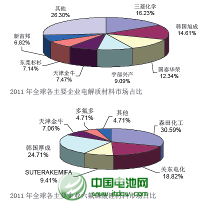 中國(guó)儲(chǔ)能網(wǎng)訊:在鋰離子電池電解液材料市場(chǎng)占有率方面排行前七位的企業(yè)中,中國(guó)企業(yè)有4 家,分別是國(guó)泰華榮、天津金牛、東莞杉杉和深圳新宙邦。國(guó)泰華榮(江蘇國(guó)泰集團(tuán)旗下企業(yè))是中國(guó)最大的電解液材料企業(yè),2011 年的銷(xiāo)量為3,800 噸左右(公司自稱(chēng)在4,500噸以上),全球占比為12.34%。這兩年,國(guó)泰華榮的國(guó)內(nèi)鋰離子電池企業(yè)的訂單總量雖然在持續(xù)上升,但市場(chǎng)紛紛卻呈現(xiàn)下降趨勢(shì),相反,來(lái)自國(guó)際鋰離子電池企業(yè)的中國(guó)工廠(如索尼、松下、LG 化學(xué)、三星SDI 等)的訂單卻在明顯增加。為滿(mǎn)足日益增長(zhǎng)的市場(chǎng)需求,國(guó)泰華榮的電解液材料產(chǎn)能2011 年底已擴(kuò)充至1 萬(wàn)噸。
