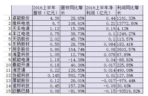中國儲能網(wǎng)訊:2016上半年已經(jīng)過去,各大新三板鋰電企業(yè)亦紛紛發(fā)布上半年盈收中報(bào),那么頗受關(guān)注的新三板鋰電企業(yè)上半年業(yè)績幾何?截至8月16日,已有15家新三板鋰電企業(yè)發(fā)布中報(bào),有12家企業(yè)實(shí)現(xiàn)盈利。