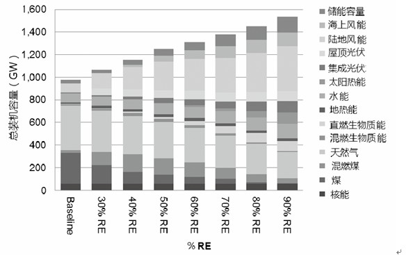 美國(guó)可再生能源實(shí)驗(yàn)室與麻省理工學(xué)院牽頭,美國(guó)能源部實(shí)驗(yàn)室、工業(yè)界、高校與政府部門(mén)等各界人士共同參與,完成了《美國(guó)可再生能源發(fā)電前景研究》?!肚熬把芯俊凡捎脙煞N模型進(jìn)行分析,分別為區(qū)域能源調(diào)度系統(tǒng)模型(Regional Energy Deployment System Model)與電網(wǎng)安全模型(GridView Model),著重研究不同可再生能源發(fā)電量比重對(duì)電源結(jié)構(gòu)、輸電設(shè)施以及消納措施等方面的影響,同時(shí)針對(duì)80%可再生能源發(fā)電量情景進(jìn)行敏感性分析,而且考慮到了電量需求因素的影響。這對(duì)美國(guó)以及其他國(guó)家可再生能源發(fā)展具有重要借鑒意義。