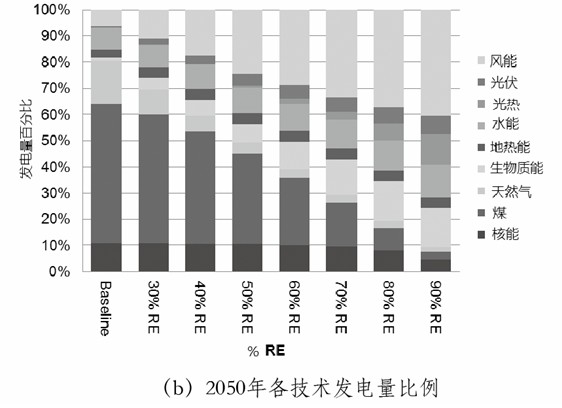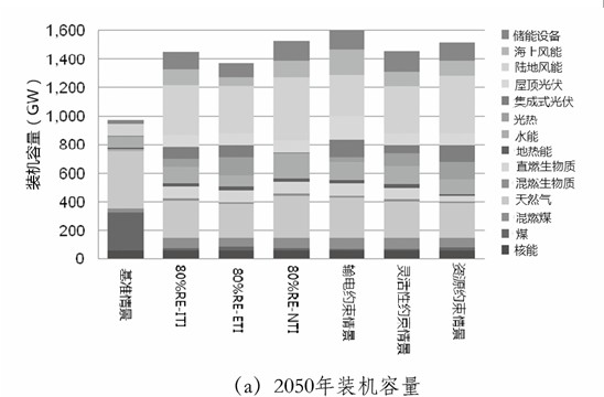 (a)2050年各技術(shù)裝機(jī)容量