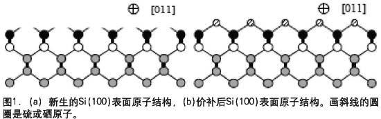 “價補(valence mending)”的概念是Kaxiras提出的,旨在解除半導(dǎo)體表面的懸空鍵。對于Si(100)表面,價補是用硫或硒的單原子層實現(xiàn)的。在新生Si(100)表面,每一表面原子占據(jù)二個懸空鍵,如圖1(a)所示。這些懸空鍵是表面態(tài)的起源,它們釘扎表面費米能級。在金屬/Si界面,費米能級釘扎效應(yīng)使肖特基勢壘高度與金屬功函數(shù)沒什么關(guān)系,主要受表面態(tài)(或更恰當(dāng)?shù)卣f是界面態(tài))的控制。硫或硒的單原子層淀積在Si(100)表面時,它們在二個Si原子間橋接,很好地中止了Si(100)上的懸空鍵,如圖1(b)所示。我們已有論文報道過硫或硒用于Si(100)表面的價補鈍化,然而,對于萬億瓦級光伏應(yīng)用,硫比硒豐富得多。