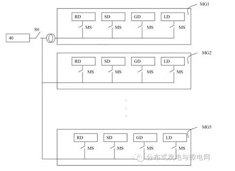 其中,各個(gè)再生能源裝置、儲(chǔ)能裝置、發(fā)電裝置及負(fù)載可以分別通過微電網(wǎng)開關(guān)與市電開關(guān)直接連接。
